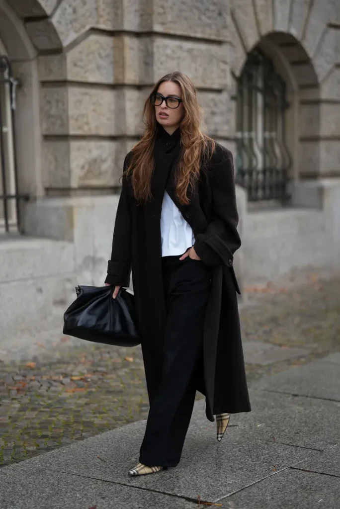 Ballet flats aren’t just for summer and fall; if the weather permits, they can also be worn in the winter. Their slim profile balances the volume of a wide-leg pant, resulting in a simple, elongated silhouette. Wear them with a sweater and a structured winter coat for a chic, transitional cold-weather ensemble.