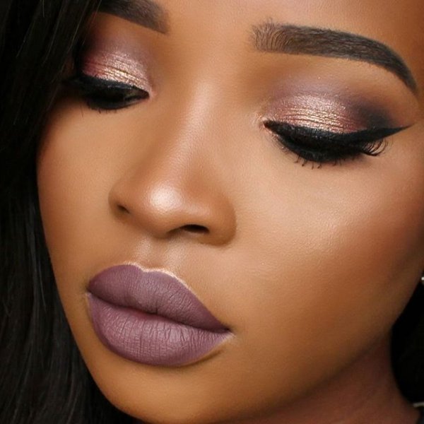 Rose gold makeup styles are great for any event, from a casual day out to a formal one. This soft rose gold eyeshadow look is great for regular wear. It goes on easily and leaves an ethereal sheen. You put the rose gold eyeshadow in the inner corner of your eyes to make them look brighter and softer. A mauve lipstick is added to finish off the appearance.