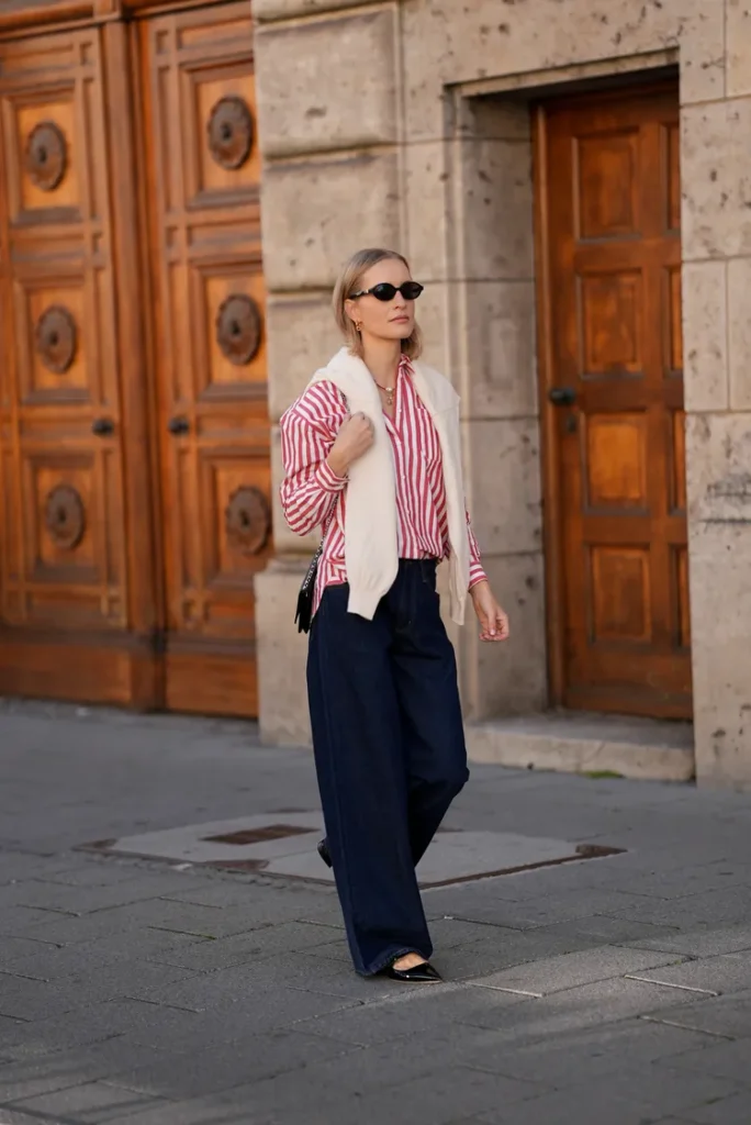 If you want to look casual-cool, wearing a crewneck or hoodie is the best option. Paying homage to Hailey Bieber’s street style, add a few bold accessories, such as a chunky purse, a statement jacket, or layered necklaces, to personalize this classic look.