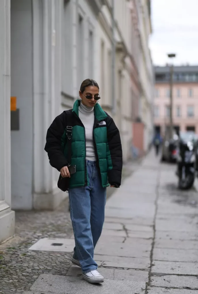 Looking effortlessly chic while running errands just got a whole new look. Instead of throwing on sweatpants, put together a quick but classic layered turtleneck outfit. Take inspiration from Jennifer Lawerence, who in 2023 wore a black turtleneck with an oversized trench coat that complemented a pair of baggy jeans. Choose a casual pair of shoes over heels. This way, you’ll maintain the sporty vibe rather than veering into more business casual territory.