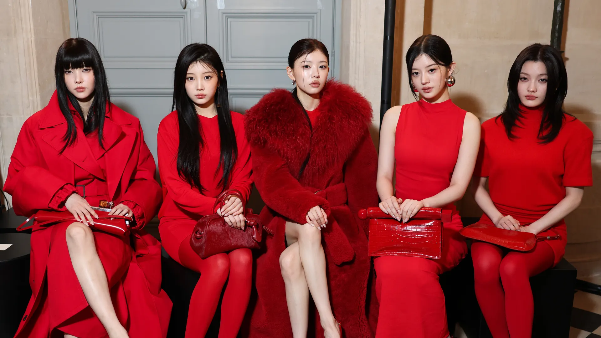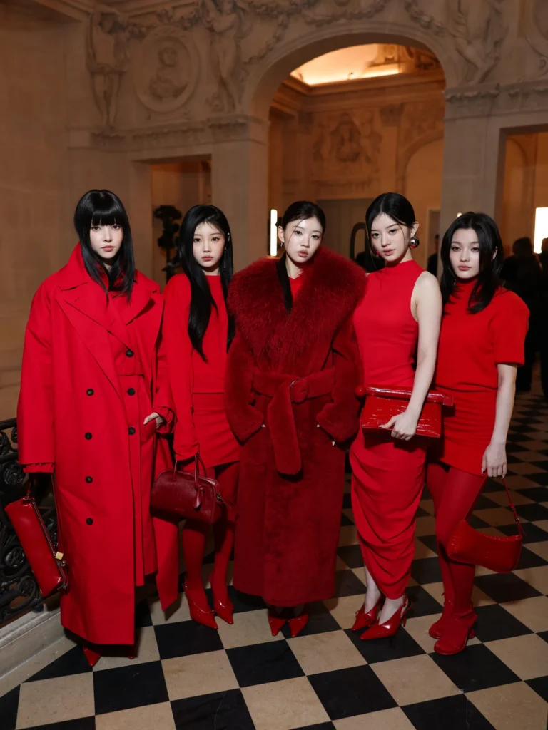 Take a hint from ILLIT at Jacquemus’s presentation this past Paris Fashion Week and let your creativity run wild—whether you choose for a strapless corset, a long sleeve top, an off-the-shoulder cami, or a ruffled or ruched dress, you can’t go wrong with this ‘fit recipe. Of course, red dresses are always a safe option. The beautiful thing about monochromatic clothes is that you can experiment with textures — think faux fur, sequins, and lace trims — to add depth to your palette.