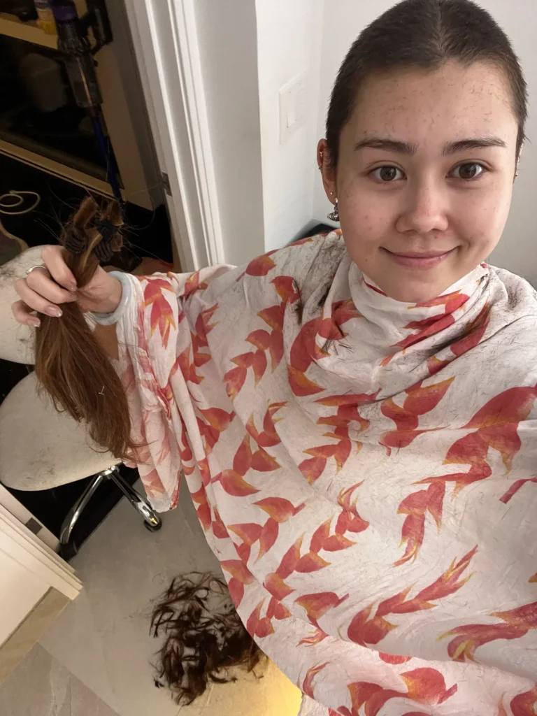 Erika Titus never imagined she’d shave her head, but the desire to cut off all of her hair drove her insane for days last December. “I’m not sure what caused the initial thought—maybe I was watching Stranger Things, so I was thinking about [Eleven’s] [shaved] head,” Titus tells Teen Vogue via Zoom.