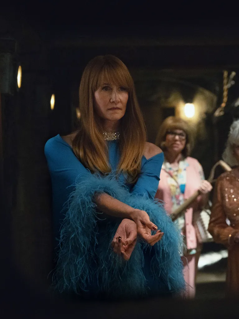 This might have been taken directly from the wardrobe department of Palm Royale season 2.