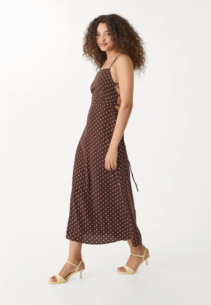 I’m amazed at how many high street labels, in particular, are offering pricey-looking versions of the trend as they appear throughout the market. Continue reading to see my selection of the top brown polka dot dresses, ranging from high-end brands Zimmermann and Alessandra Rich to Zara and Mango.