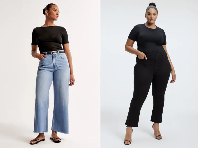 Who It’s For: The A&F cropped wide-leg jean, available in a variety of lengths and a more inclusive size range, is ideal for ladies with wider hips and thighs who seek a comfortable fit without tailoring. As an added advantage, the trendy silhouette does not cling.