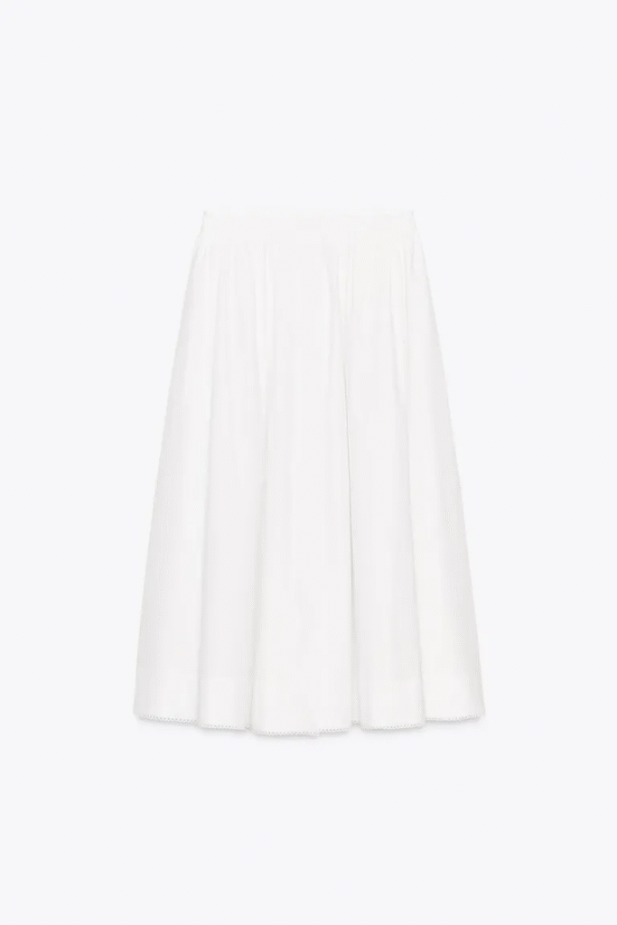A midi skirt made of poplin will soon become your go-to item for the summer.