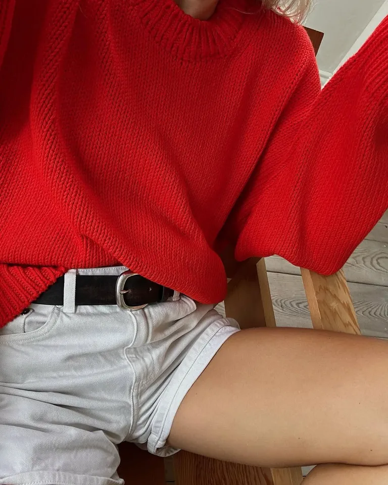 Style Tip: Wear a red knit with your shorts on chilly nights. Whether you’re wearing linen, cargo, or classic blue denim, the red will add a quick and fashionable touch to your ensemble.