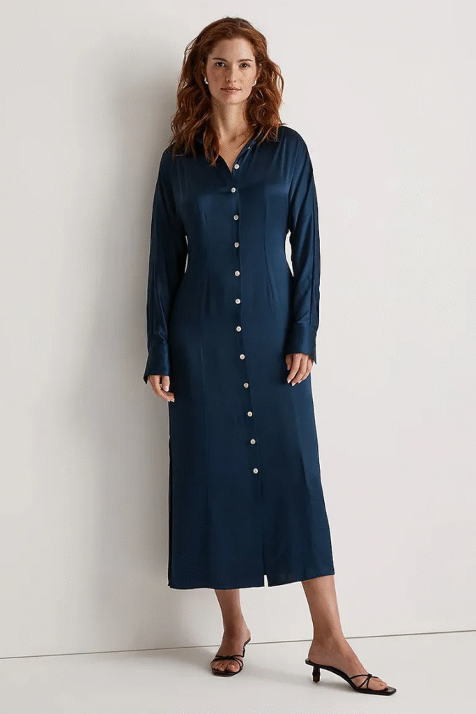Satin Button-Front Midi Shirtdress