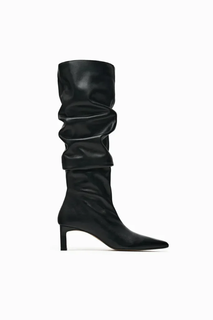 Slouchy Knee-High Heeled Leather Boots