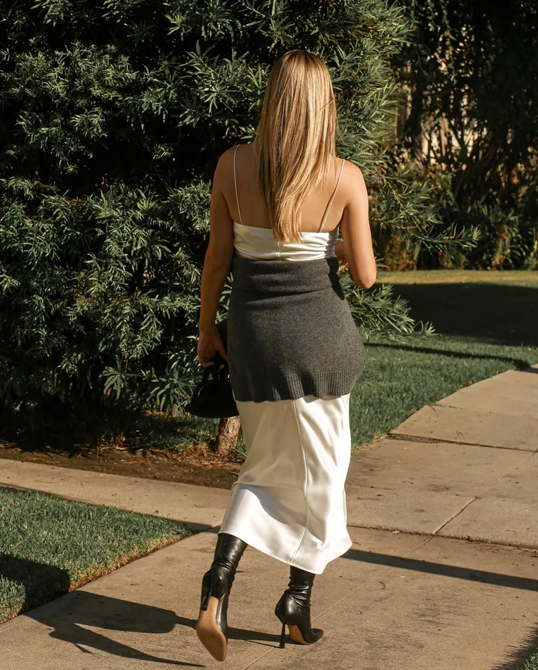 Slip dresses are quite adaptable because they look nice and respectable yet feel as comfortable as pajamas (which they are). For your next night at the ballet, wear some nice, fitting boots and tie a warm cashmere knit around your waist. You can take it off when the air conditioning gets too cold.