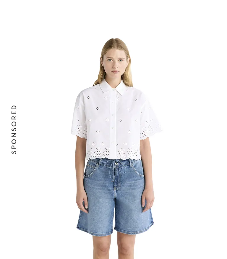 Cropped Cotton Eyelet Shirt