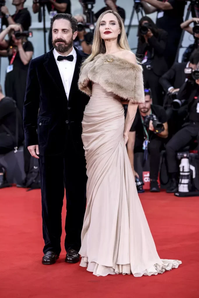 On Thursday, the actress attended a screening for her new film, Maria, at the 2024 Venice Film Festival wearing a clothing that demonstrated her readiness for cooler weather. Jolie went from peaceful luxury linens to mob wife in a Champagne-colored Tamara Ralph gown with draped fabric down the skirt and a Watteau train, complete with an off-the-shoulder brown faux-fur shrug.