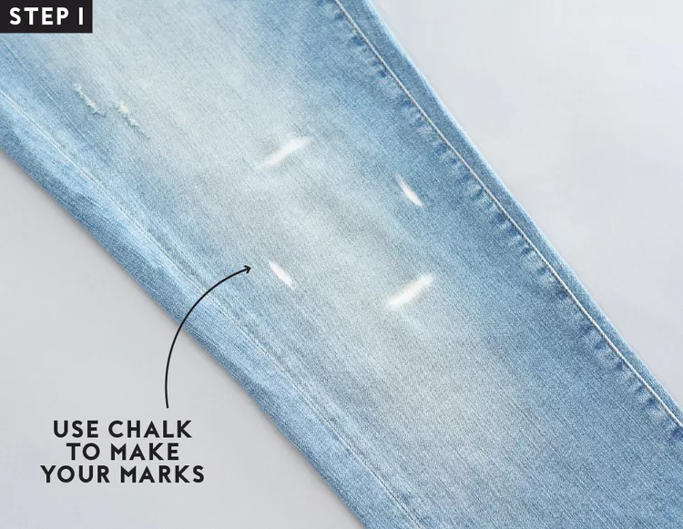 The finished appearance should include a distressed pair of jeans. Put them on and get ready for loads of compliments.