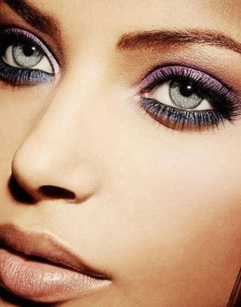 The key to making those beautiful blue eyes stand out is to keep it simple. Choose shimmering, light-reflecting colors like champagne, pastel pink, or silver to make everything a little brighter. A light sweep of these light colors across the lid can brighten the eyes and let the blue shimmer stand out even more. It’s not about putting on too much; a light touch in the inner corners or a dusted finish on the lid can make you seem better without much effort. This simple style may be just as eye-catching as a bolder one; it’s all about allowing your inherent beauty show through.