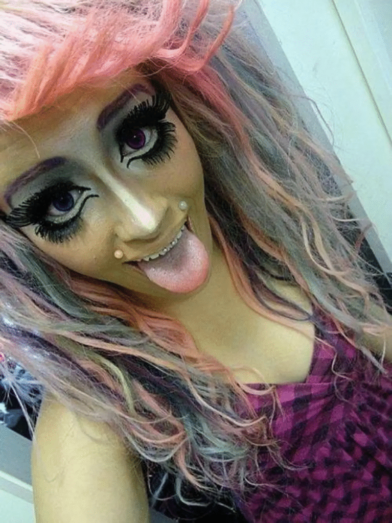 This picture shows a beauty experiment that went wrong. It’s a warning about the dangers of trying to be cutting-edge. With a teased mane that looks like a lioness’s and eyeliner that looks like it was put on while riding a rollercoaster, you can’t help but wonder if a mirror was used in this procedure. And what about that tongue? It’s a bright pink color that makes no sense. It looks like it’s attempting to get away from the makeup mess around it. When it comes to putting on makeup, remember that less is frequently more.