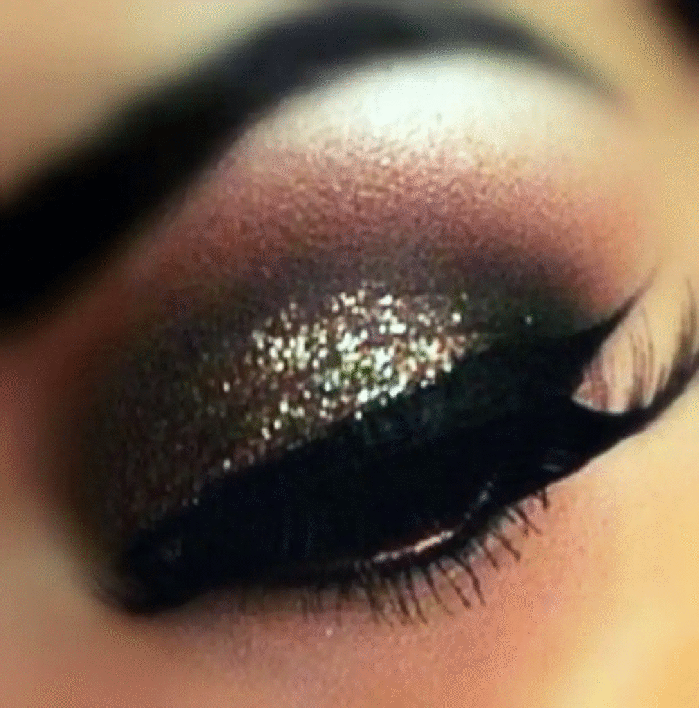 But not all nighttime eye shadow looks have to be crazy. A little smokey sparkle in bronze always looks great.