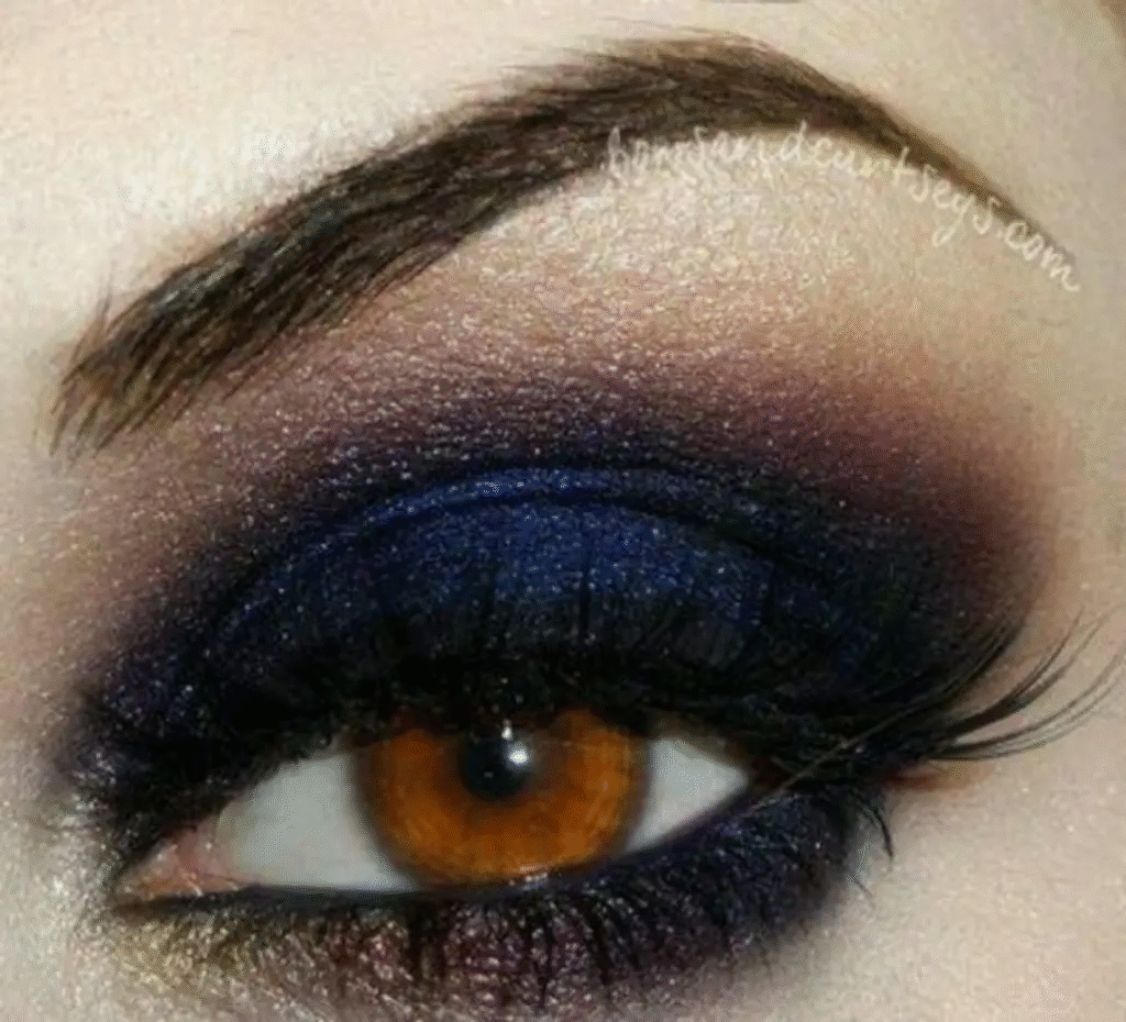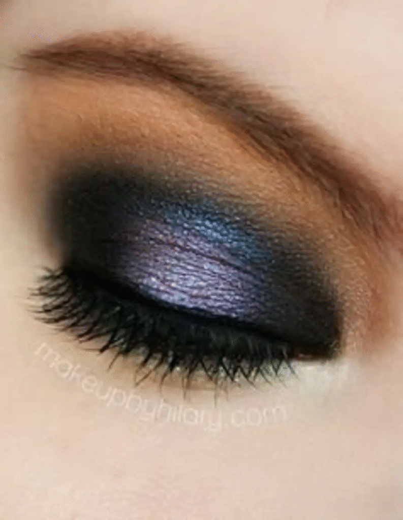 Like a dark night sky, this is also excellent for an evening appearance. I adore the dramatic, gritty mix and the hint of purple along the bottom lashes.