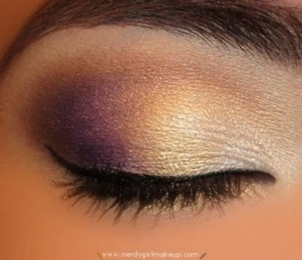 Gold and purple look great together, and this combination looks especially good with green or hazel eyes.