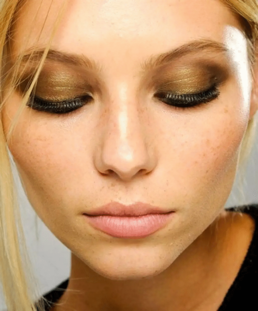 Now, utilizing too much gold can be a bit of an eyesore (pun intended). To make the gold look more green, try blending it with a little green. The green will provide depth, and the gold will bring out your natural brown. Woo hurrah for differences!