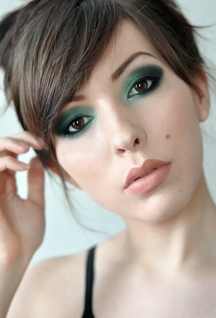 I adore using browns and greens, and green is one of my favorite colors. I think they go well together organically. A little bit of each color may make a big difference. If you gently swipe brown across your eyelids and add a little green to the crease, your eyes will look naturally colorful.