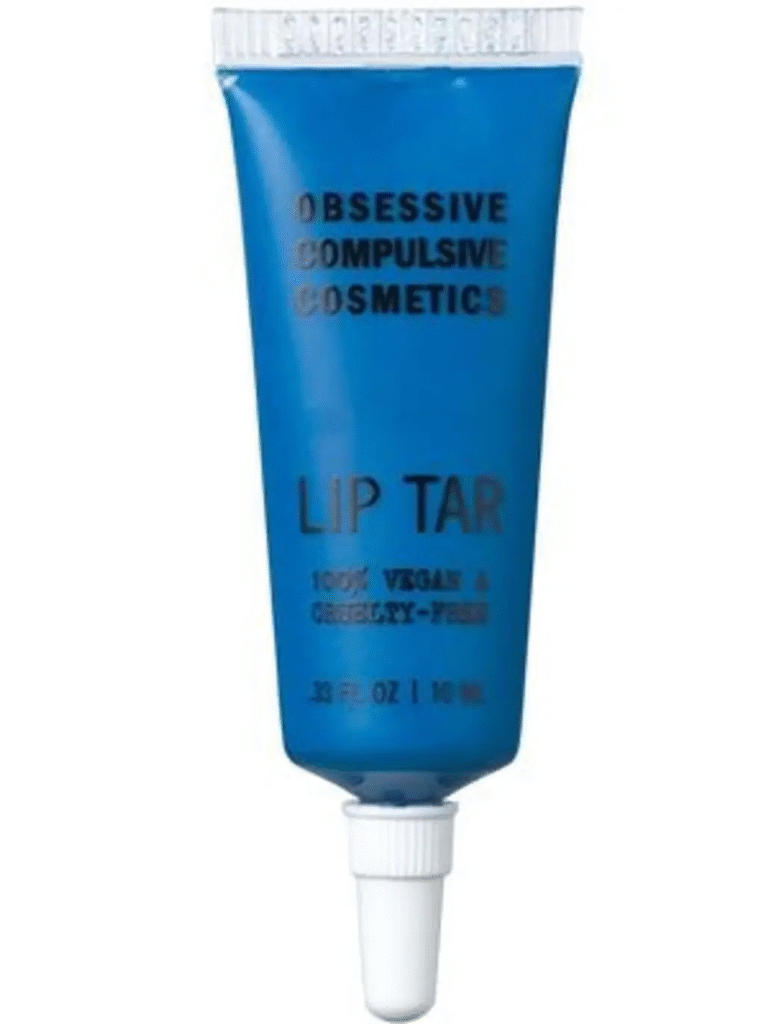 - Obsessive Compulsive Cosmetics RX Matte Lip TarOCC lip tars are the first thing that comes to me when I think about bright lip colors. I mean, one of the lip tar formulas has almost every hue of the rainbow in it. RX is a real cyan blue color that appears scary, yet with the correct makeup, it really stands out and makes your lips look great. This lip color looks good with both simple and strong, colorful eye makeup. Don’t forget that cosmetics is all about having fun!