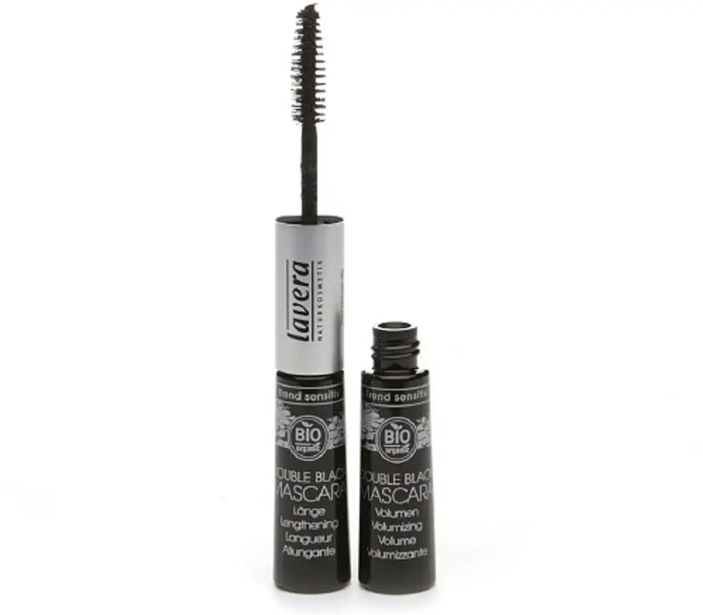 This beautiful golden squeeze tube holds a large, tapered brush that captures each lash and adds volume, length, and separation. I enjoy that the consistency is rather dry because the faster mascara dries, the less likely it is to smudge. This mascara is the best way to make my barely-there lashes look longer and fuller without clumping. The price is a touch costly, but if you want non-toxic mascaras that work, it’s worth it.