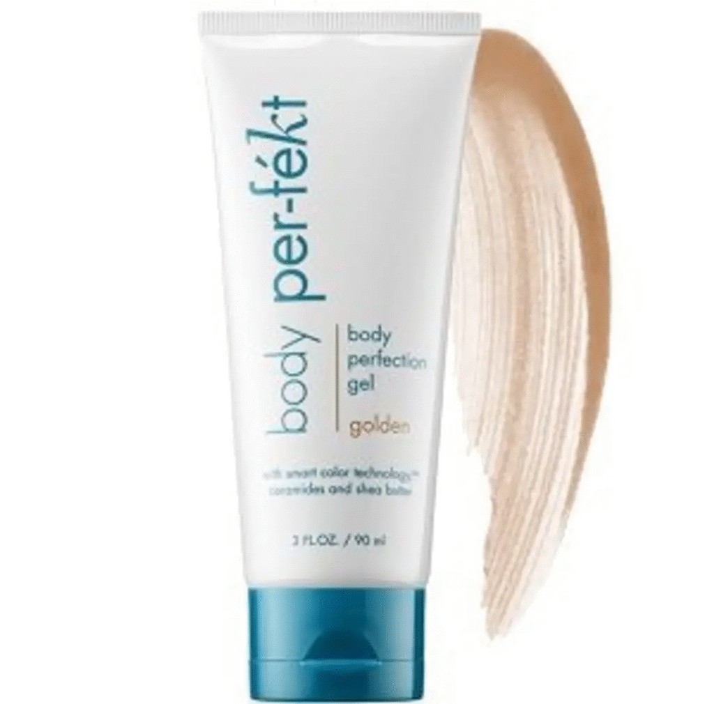 Perfekt Body Perfection Gel: lotion, cream, skin, product, I really like Perfekt Body Perfection Gel since it comes in three colors and doesn’t wash off. You don’t want your leg cream to run when you go outside in the rain. It gives you a sun-kissed look right away and doesn’t cover up too much. It helps to tighten and tone the skin over time, and it makes imperfections look better. I love how quickly it dries and how there are no streaks left behind.