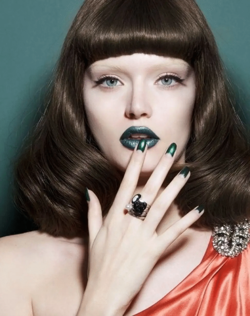 It’s not just for Halloween anymore to wear green lipstick. Gaga wore a mint green lipstick in her music video for “Marry the Night” in 2011, which got people talking about green lipstick. Mint green seemed like the best colour choice because of the pastel trend. But in 2013, Pantone named emerald the colour of the year, and darker green lipstick options started to become popular. Dolce & Gabbana made an emerald lipstick that was very popular. Would you wear this bold colour?