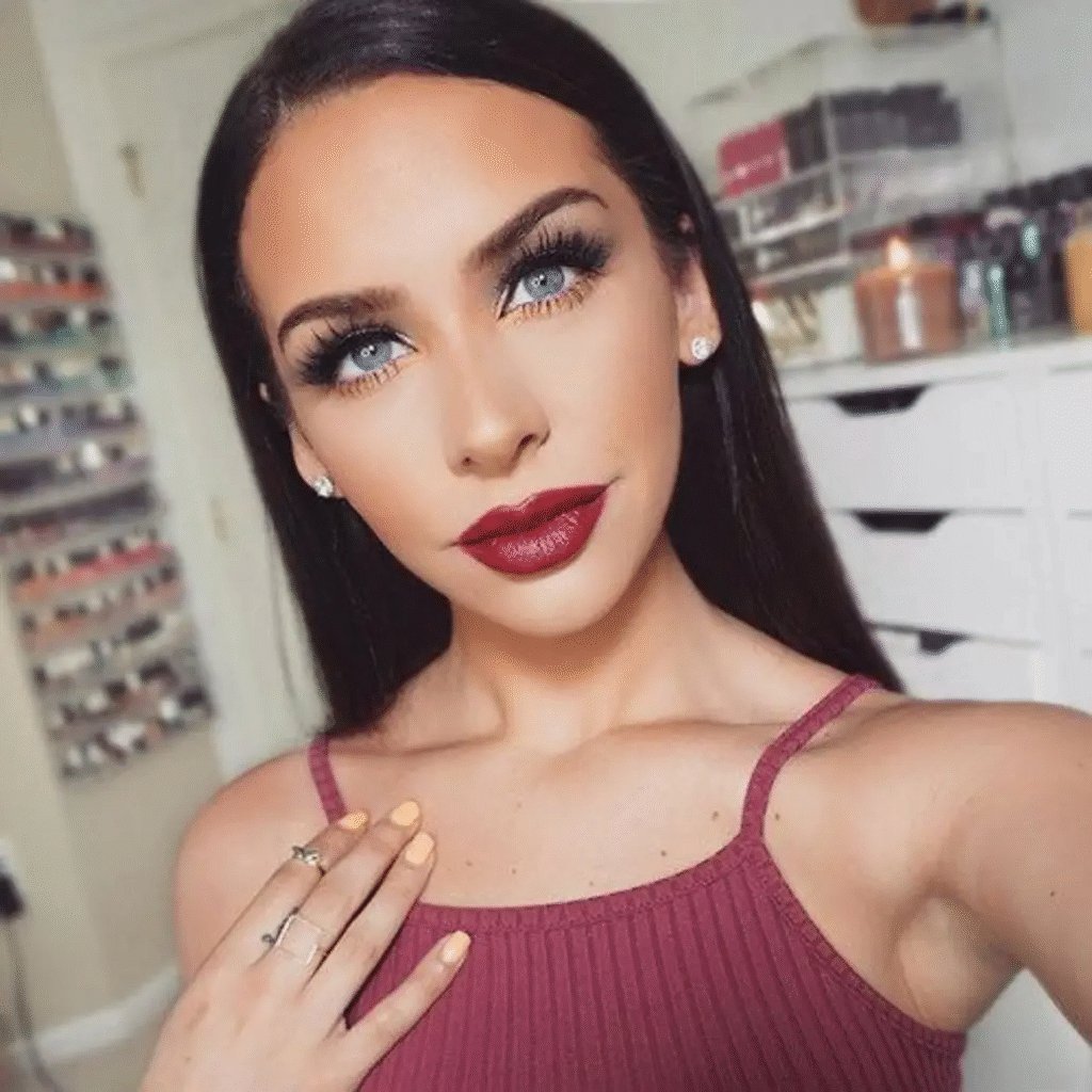 Burgundy’s warm, rich colors look great with brown hair. It looks wonderful on your lips because it really stands out against your skin tone and hair color. I think burgundy is a fantastic hue for fall, and when the weather starts to turn a little chilly, it’s my favorite color for my lips.