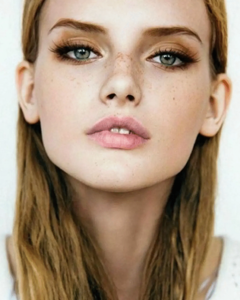 Embracing the way your skin naturally feels lets those pretty freckles shine. With just a little foundation, you can create a look that looks like you didn’t try at all and is full of real charm. Don’t be afraid to define your eyebrows; a little bit of boldness there goes well with the rest of the look. It adds a refined contrast to the basic background, making sure that your features stand out without hiding your unique freckle patterns. It’s important to find a balance and love the skin you’re in.