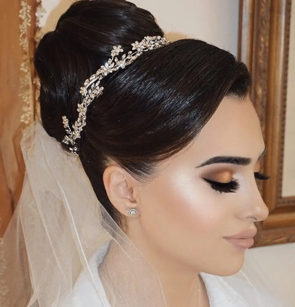 The bride’s outfit is nice. It’s a delicate and modest way to wear your makeup. It’s makeup that you want people to notice, but not too much. Brides frequently use neutral colors for their eye makeup, but they can also utilize plums. Lips are frequently kept in soft colors. The end result of this makeup is soft and pretty.