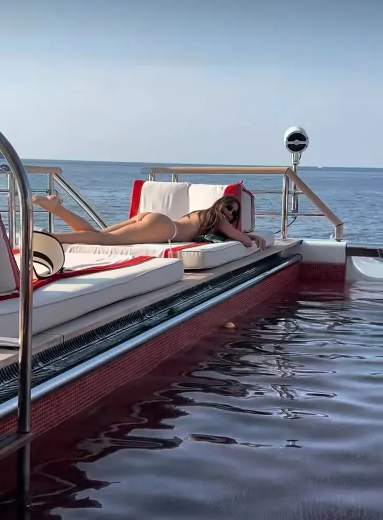 Sofia Vergara wearing nothing but white thong bikini bottoms on a yacht.Instagram/Sofia Vergara