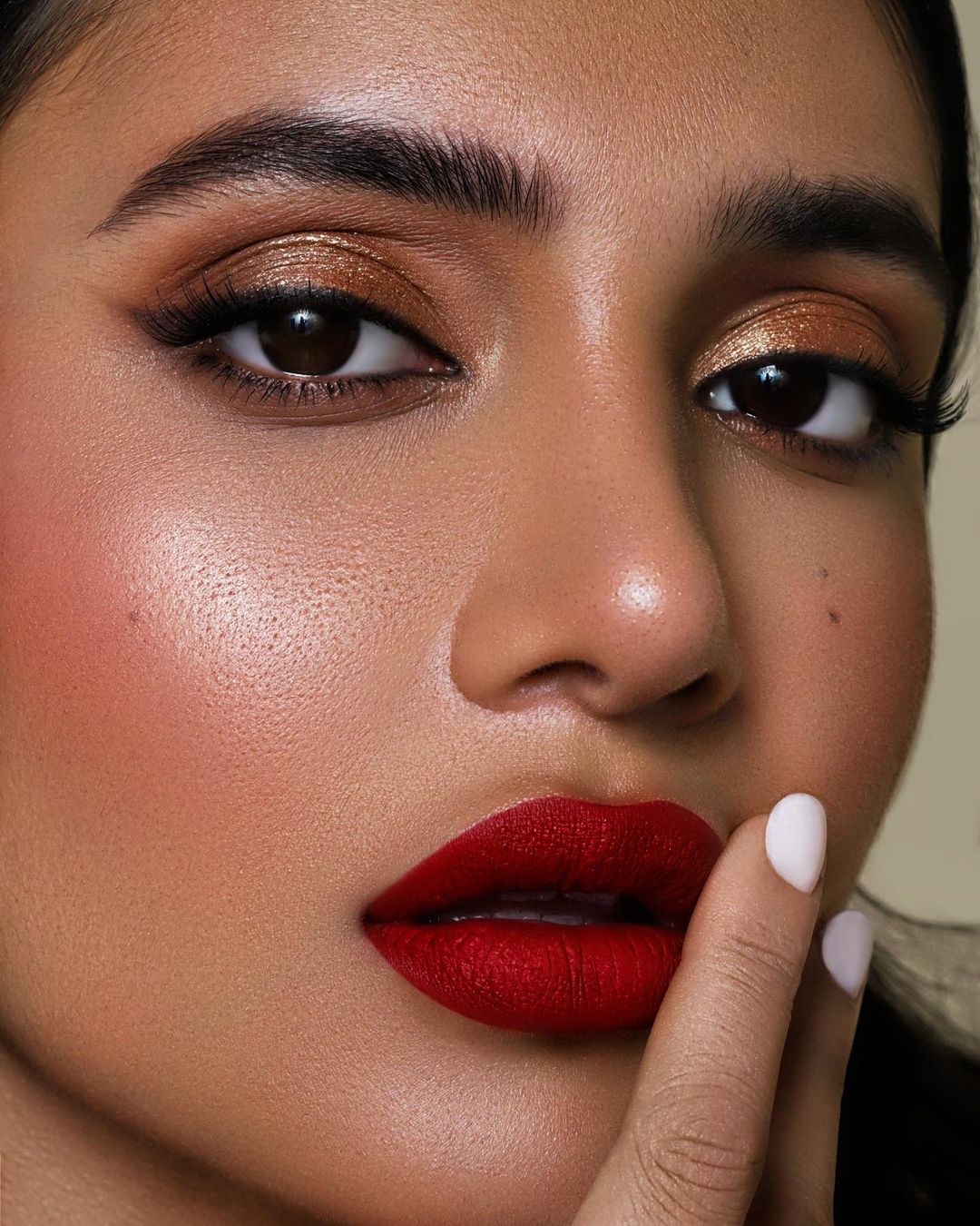 “Red goes well with green on the color wheel, so choose colors with reddish undertones.”